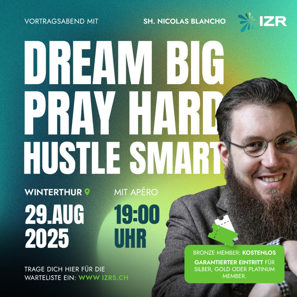 Du willst gross träumen, deine Ziele erreichen und dabei dein Iman stärken? In einer Welt voller Ablenkungen und Konkurrenz zeigt dir dieser Vortrag, wie du Erfolg halal planst und lebst – ohne deine islamische Identität zu verlieren.